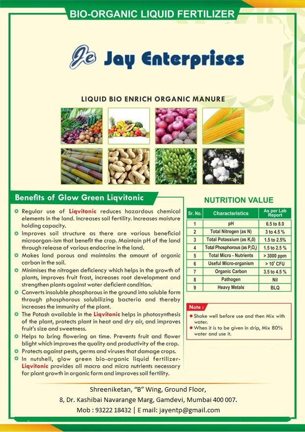 Liquitonic is an organic fertilizer in liquid form. It is food for the plant, and contains basic essential nutrients. It has 28 elements - it is like Complan, but for plants. Liquitonic has everything which a plant requires for growth and increased yield. If Liquitonic is given in the correct dosage there is need to use any other fertilizer. It is highly enriched organic manure.